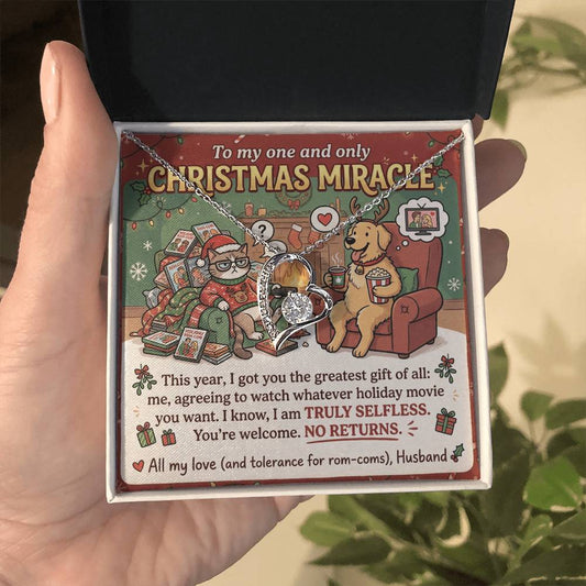 To My Christmas Miracle Necklace From Husband, Funny Christmas Gift for Wife, Romantic Holiday Jewelry, Love Knot Necklace-LKN65381
