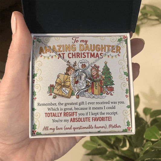To My Daughter Necklace From Mother, Funny Christmas Gift For Daughter From Mom, Birthday Gift - Forever Love Necklace-FLN74071