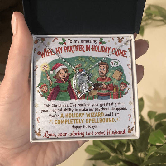 To My Wife Necklace From Husband, Funny Christmas Gift, Holiday Present for Her, My Partner in Crime - Love Knot Necklace-LKN24972