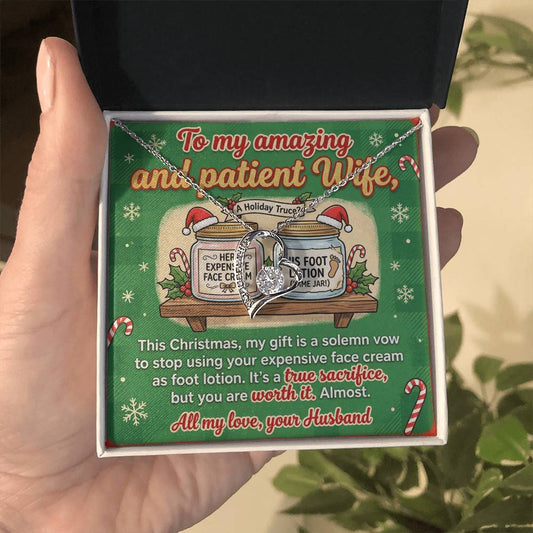 To My Wife Necklace From Husband, Funny Christmas Gift, Holiday Present for Patient Wife - Love Knot Necklace-LKN18034