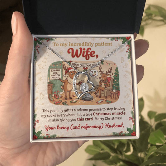 To My Wife Necklace From Husband, Funny Christmas Gift for My Patient Wife, Holiday Jewelry Gift, Love Knot Necklace-LKN82596