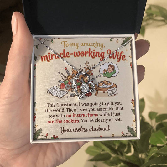 To My Wife Necklace From Husband, Funny Christmas Gift For Her, Miracle-Working Wife, Love Knot Necklace-LKN74647
