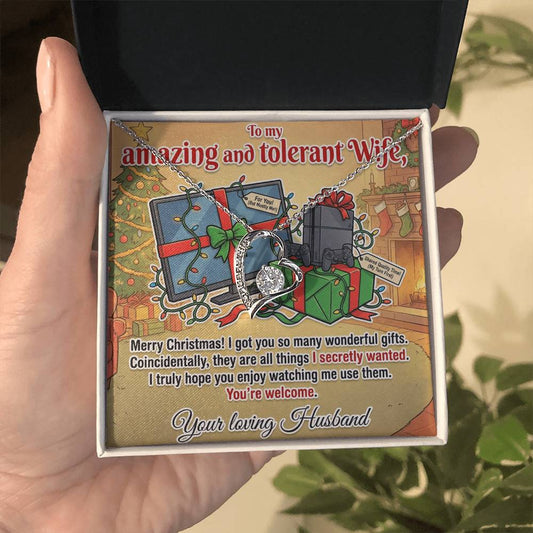 To My Wife Necklace From Husband, Funny Christmas Gift for Incredibly Patient Wife, Love Knot Necklace-LKN13588