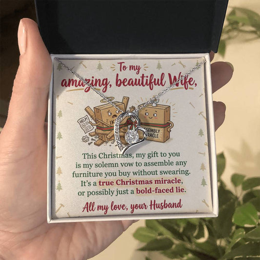 To My Wife Necklace From Husband, Funny Christmas Gift For Her, Christmas Miracle Present, Love Knot Necklace-LKN22909