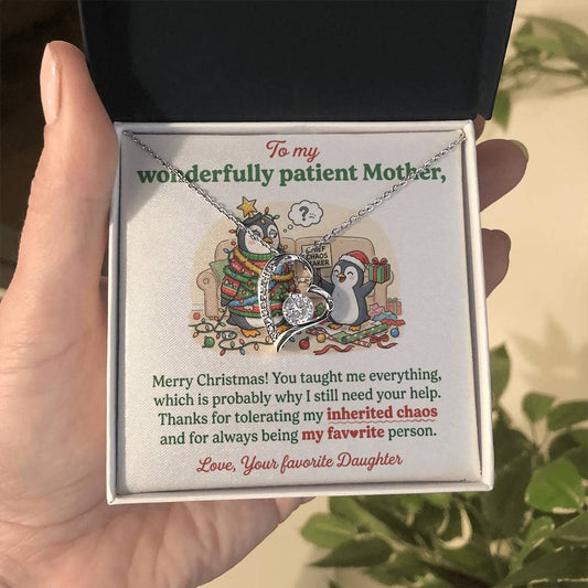 To My Mother Necklace From Daughter, Funny Christmas Gift For Mom, Holiday Gift, Merry Christmas - Love Knot Necklace-LKN18617
