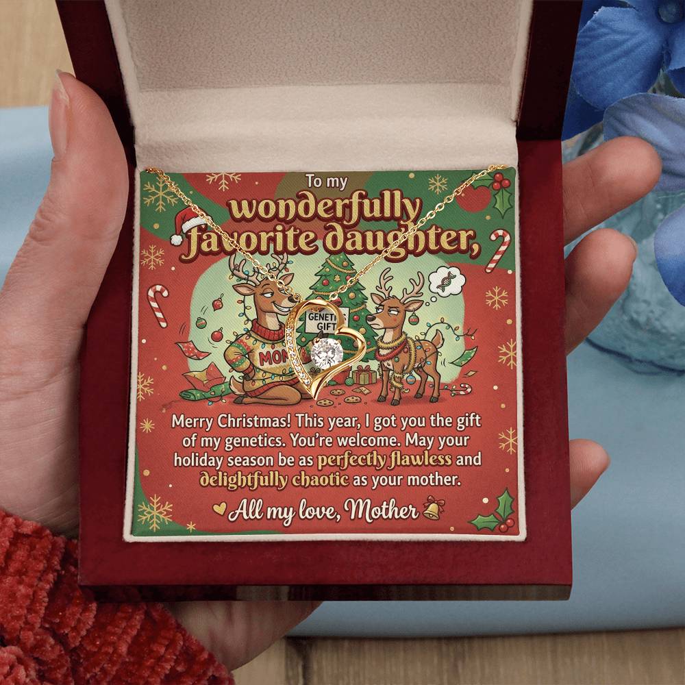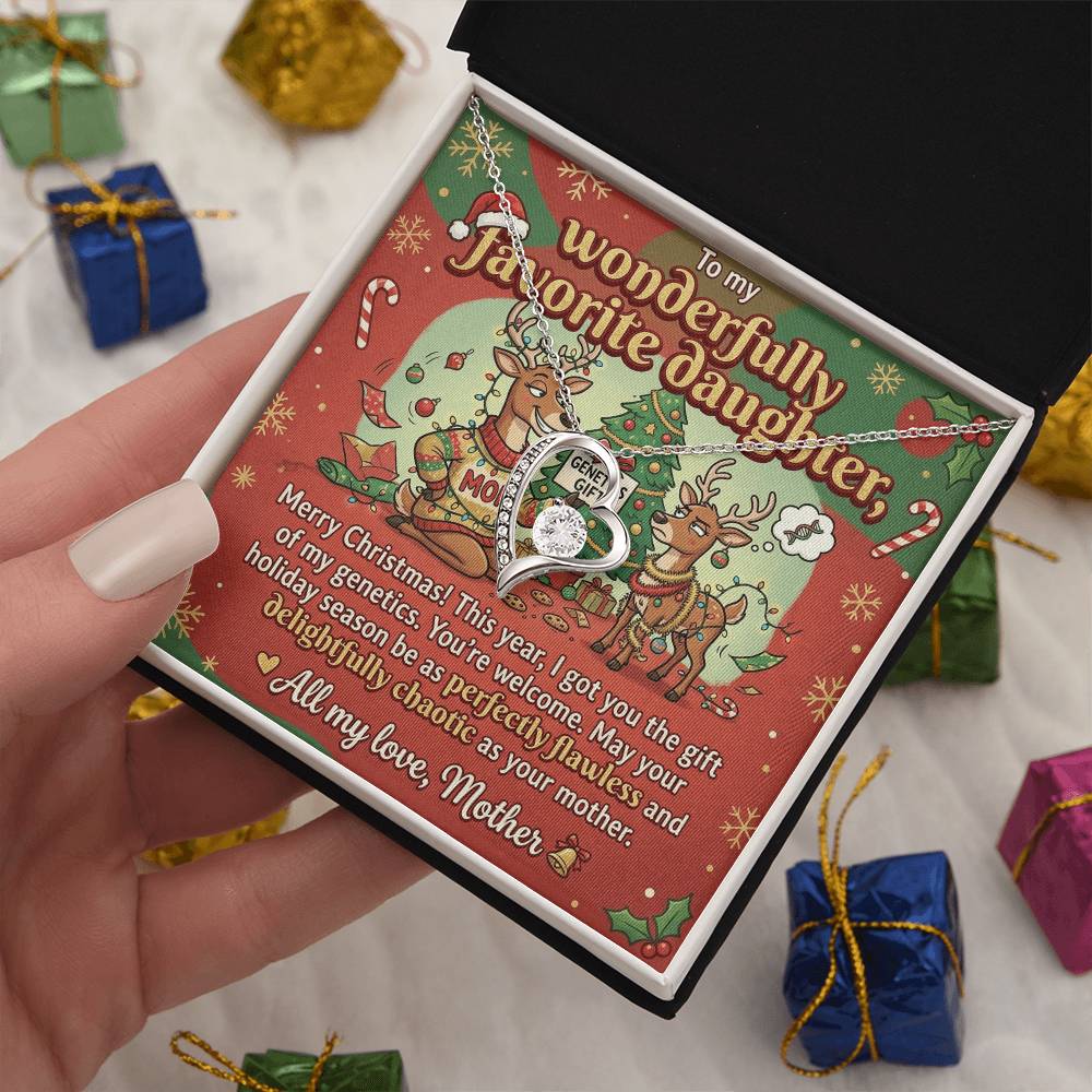 To My Daughter Necklace From Mother, Funny Christmas Gift, Holiday Gift for Daughter, Humorous Message Card, Love Knot Necklace-LKN64727