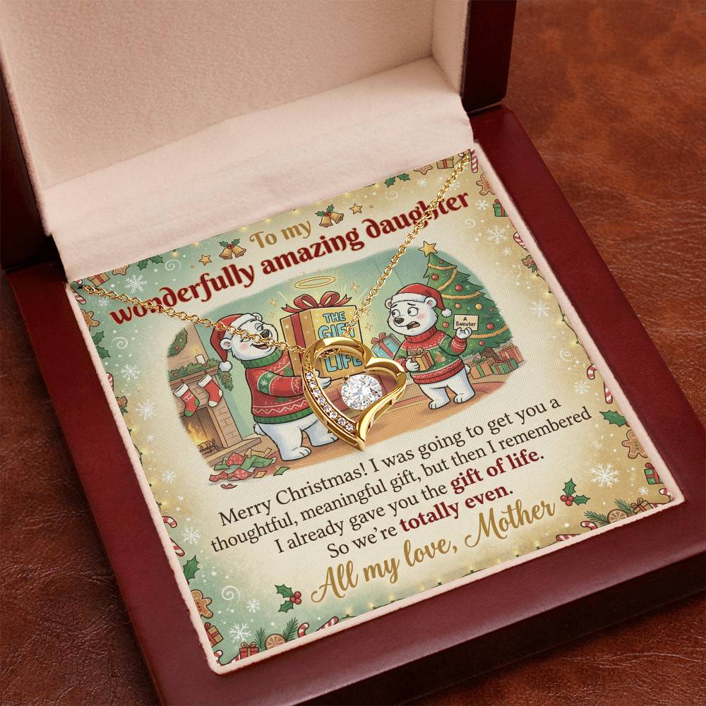 To My Daughter Necklace From Mother, Funny Christmas Gift, Mom to Daughter Holiday Present, Gift of Life Joke, Love Knot Necklace-LKN47120