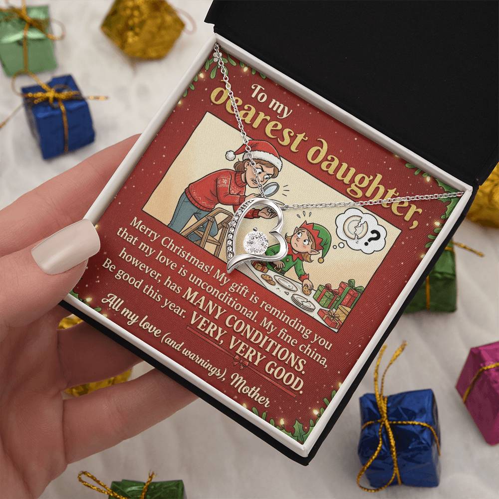To My Daughter Necklace From Mother, Funny Christmas Gift, Unconditional Love, Holiday Present for Daughter - Love Knot Necklace-LKN99362