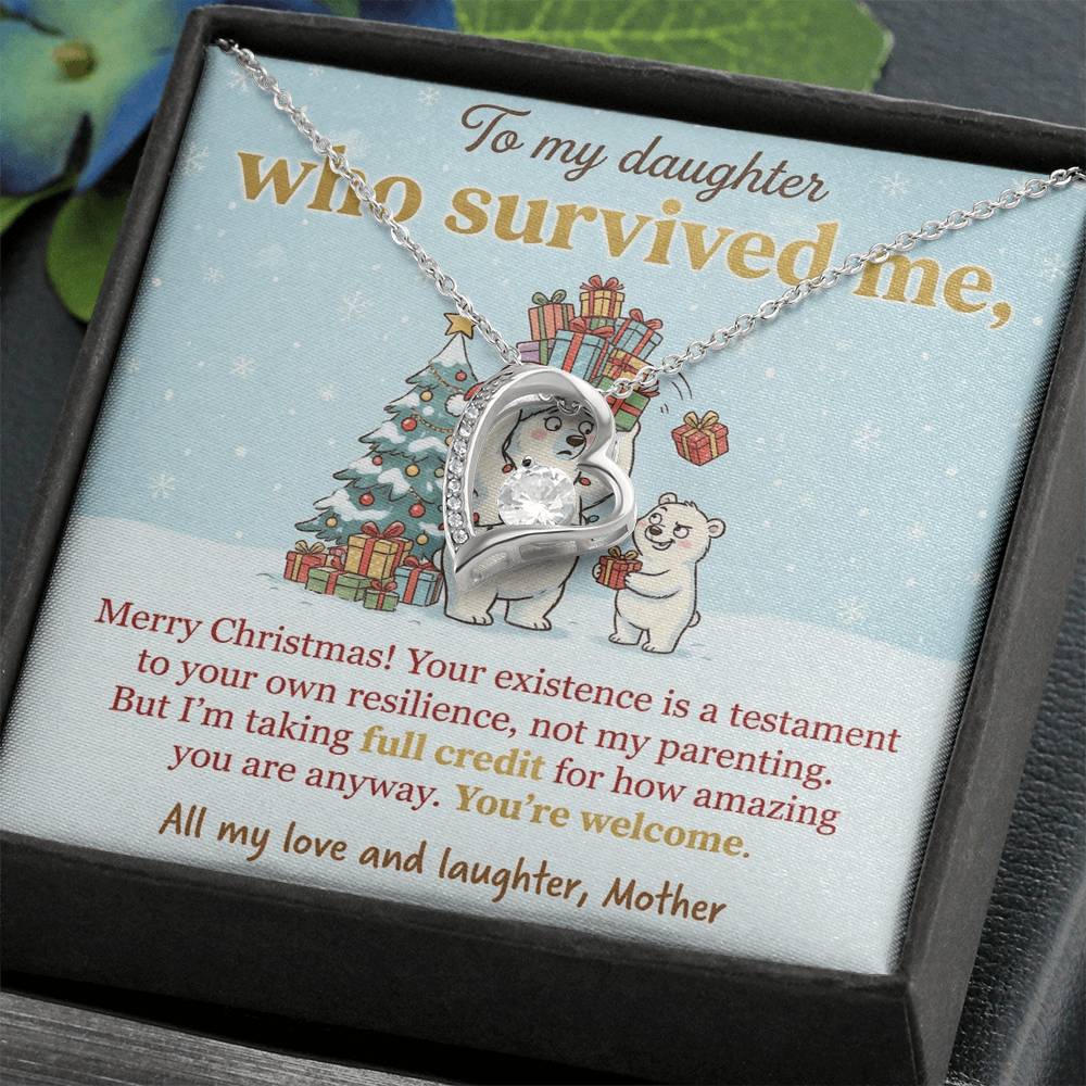 To My Daughter Necklace From Mother, Funny Christmas Gift, You Survived Me, Love Knot Necklace-LKN33664