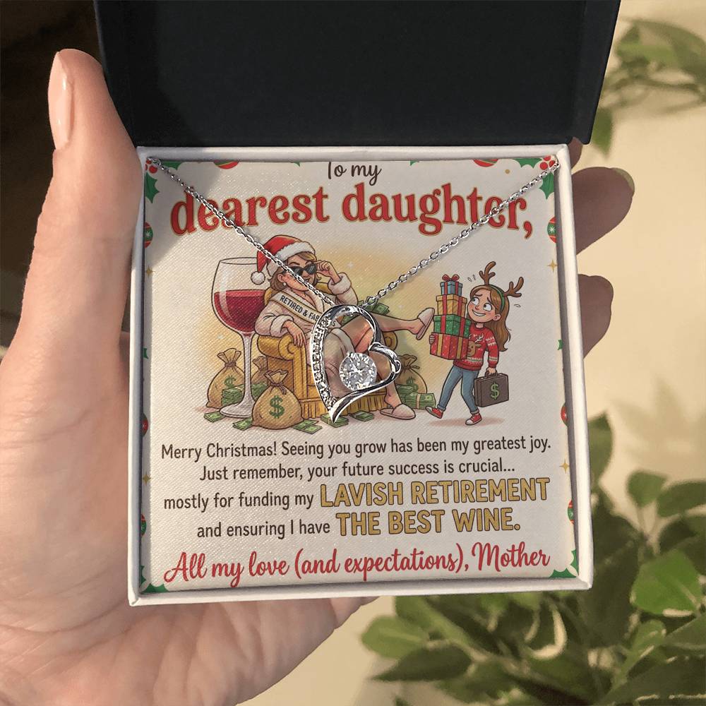 To My Dearest Daughter Necklace From Mother, Funny Christmas Gift, Humorous Xmas Present for Her, Future Success Gift, Love Knot Necklace-LKN56173