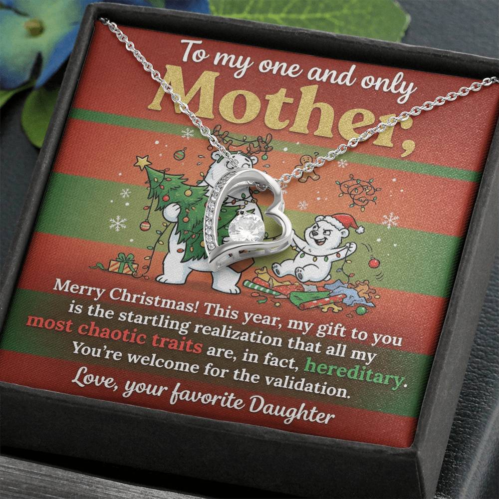 To My Mother Necklace From Daughter - Funny Christmas Gift, Holiday Present For Mom, Most Chaotic Traits Are Hereditary, Love Knot Necklace-LKN50392