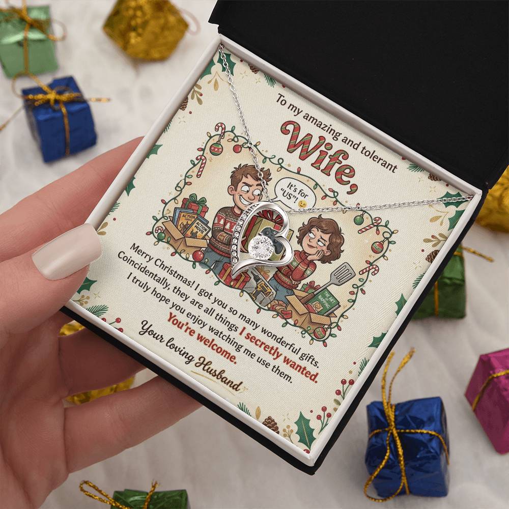 To My Wife Necklace From Husband, Funny Christmas Gift for Your Amazing and Tolerant Wife, Holiday Gift Idea, Love Knot Necklace-LKN59643