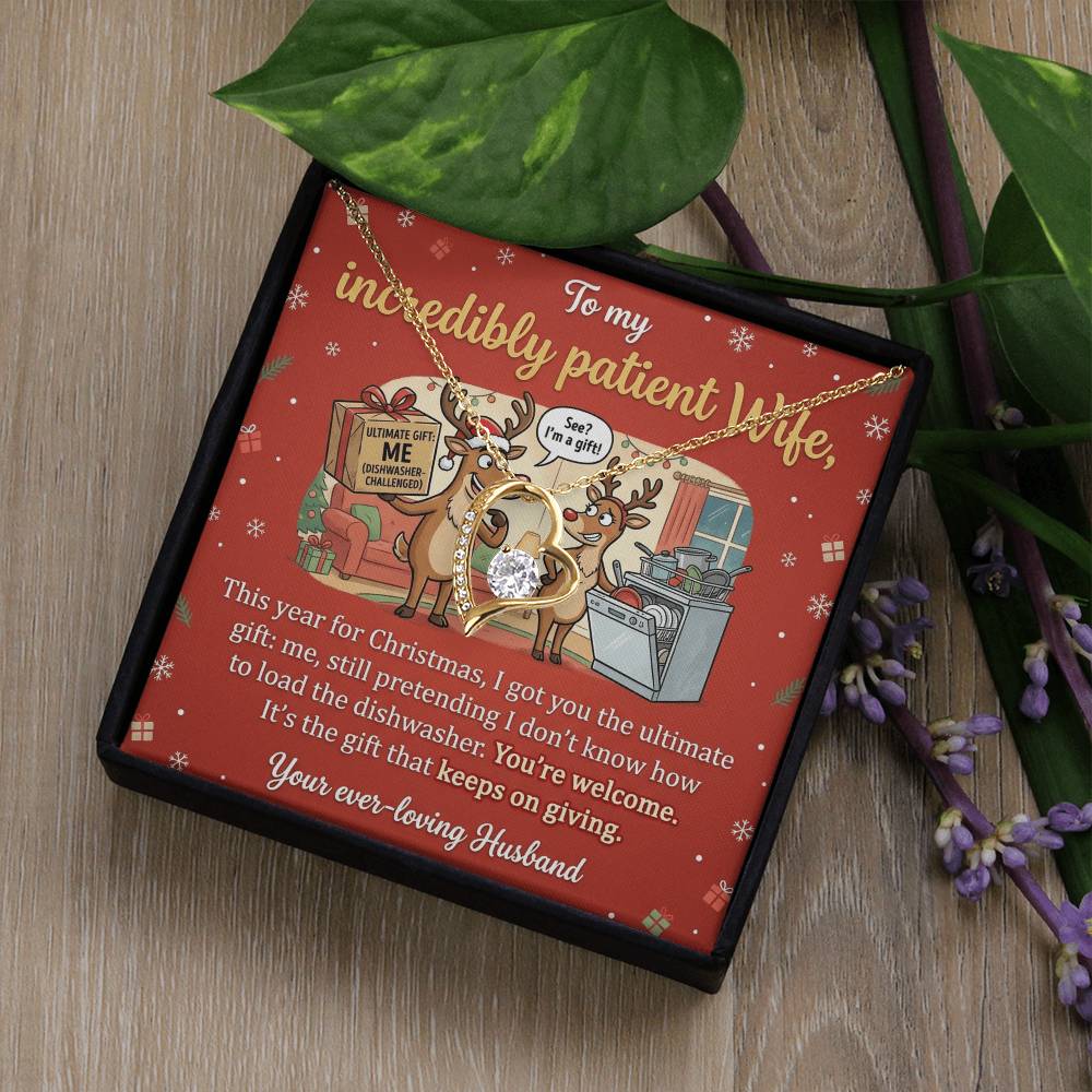 To My Wife Necklace From Husband, Funny Christmas Gift, Humorous Present for Incredibly Patient Wife - Love Knot Necklace-LKN23698